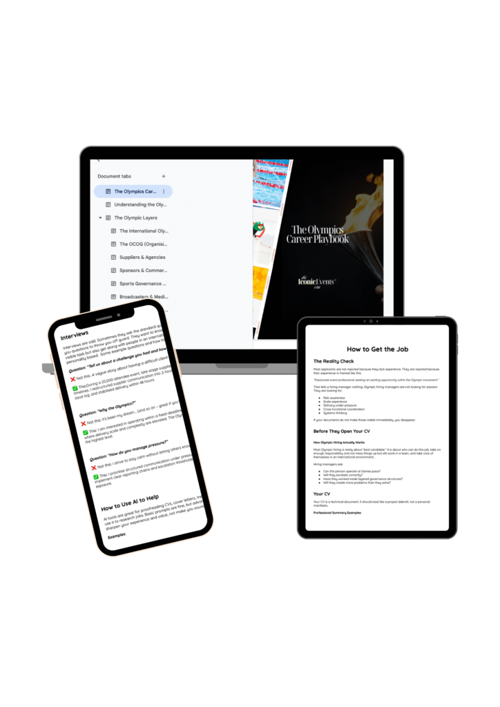 If you want a deeper dive, get the Olympics career playbook for event professionals and ambitious newcomers: https://iconicevents.thrivecart.com/work-at-the-olympics-guide/